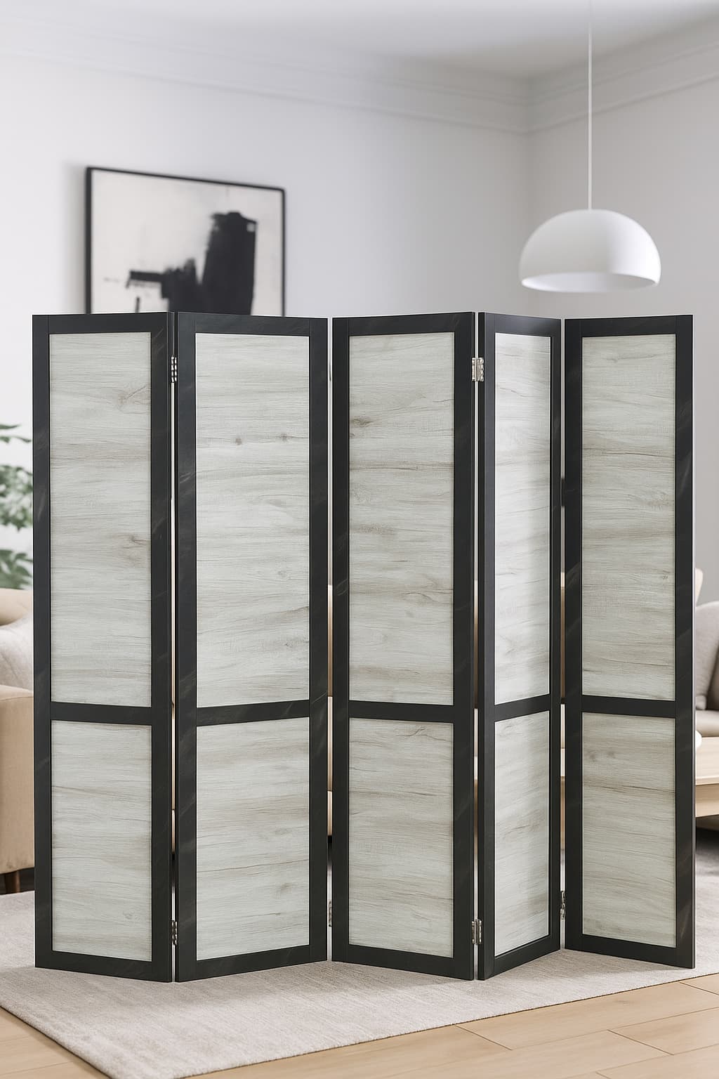 The lightweight yet sturdy construction allows for easy repositioning, making it perfect for creating privacy, dividing open spaces, or enhancing interior aesthetics. Its minimalist design fits well in modern, transitional, or even Scandinavian-style living rooms, bedrooms, or home offices. Both functional and decorative, this room divider blends utility with modern flair.